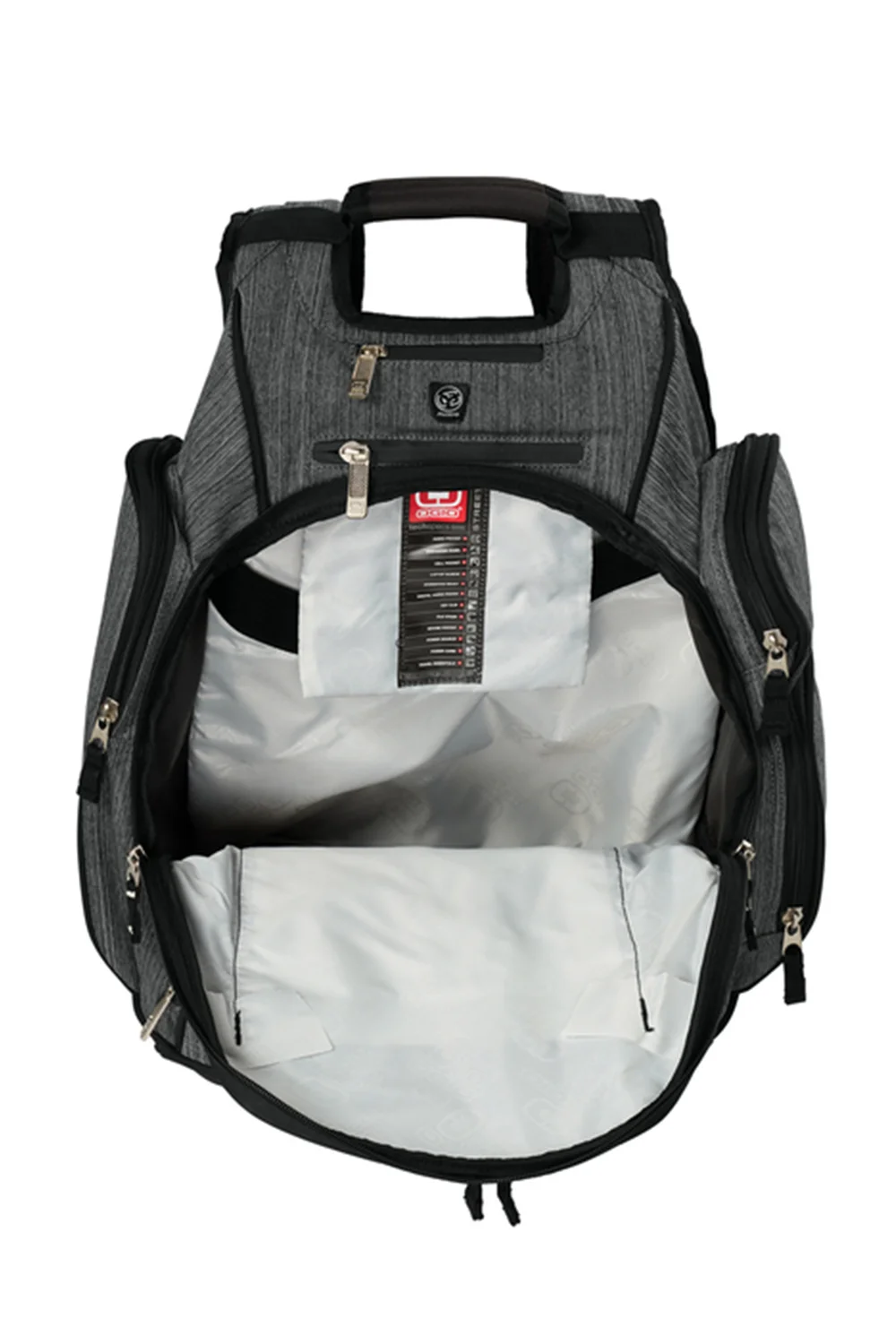 The OGIO Metro Pack is engineered to keep your gear organized and within easy reach. Designed with durable polyester construction, it features a back panel side entry padded laptop pocket, a large center storage compartment, and an internal file sleeve for streamlined organization. Dedicated storage for power cords and a mouse, along with weatherproof fleece lined digital media pockets with a headphone exit port, protect your tech essentials. Finished with an adjustable sternum strap, deluxe organization panel, and an embroidered logo on the middle front pocket, this pack delivers performance driven functionality with a polished branded look.
